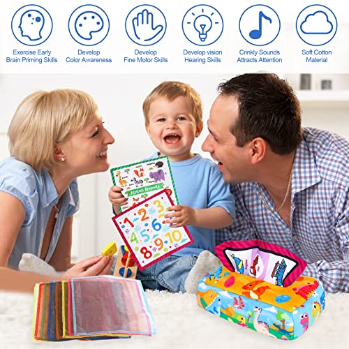 Babyspielzeug 0-6 Monate, Montessori Sensorik Spielzeug Tissue Box Spielzeug für 6-24 Monate Babys Vorschule Lernspielzeug für Kleinkinder Kinder Plus Baby Geschenke Stoff Lernspielzeug für Kleinkinder