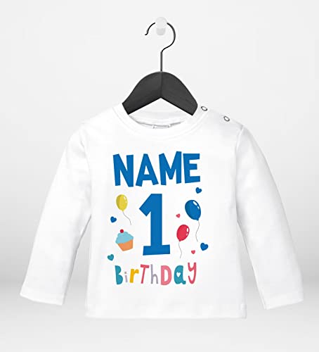 Details: MoonWorks® Baby Langarm-Shirt 1. Geburtstag personalisiert Name erster Geburtstag Zahl 1 Birthday Geburtstagsshirt