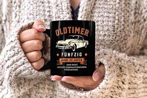Details: MoonWorks® Kaffee-Tasse Geburtstag Spruch Oldtimer Retro Design Print Vintage Auto Geschenk für Männer 50 Jahre uni…