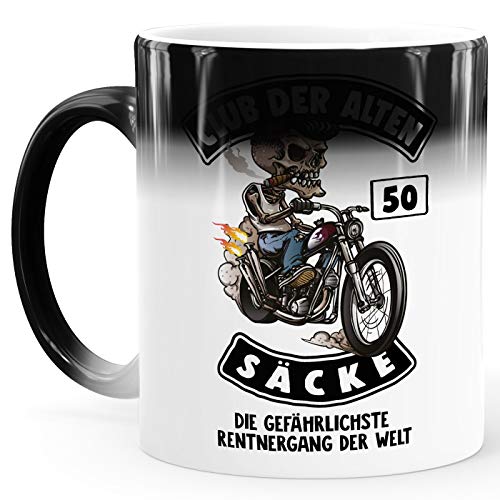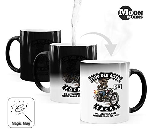 Details: MoonWorks® Zaubertasse Farbwechsel Tasse Club der alten Säcke Biker Motorrad Skelett Geschenk 50. 60. 70. 80. Geburtstag…