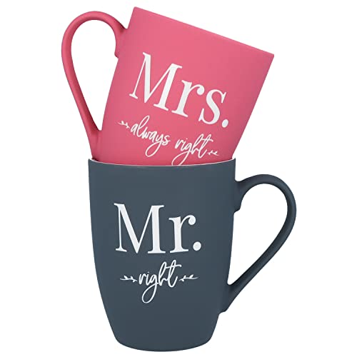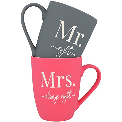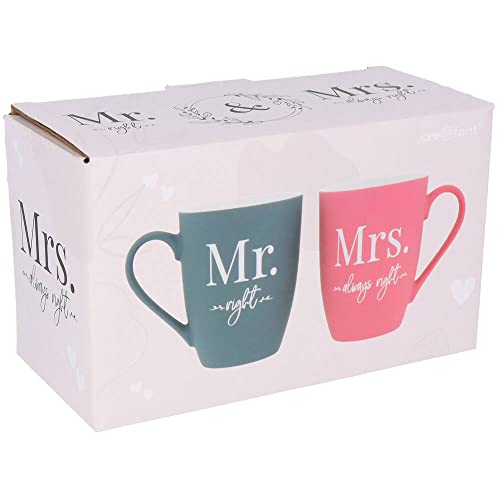 💝 LIEFERUMFANG: Dieses Set besteht aus 2 Tassen mit beidseitiger Gravur : Mr.right & Mrs.always right. Fassungsvermögen je Tasse: 350 ml, Höhe: 10,5 cm, Durchmesser: 8 cm