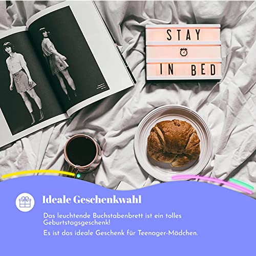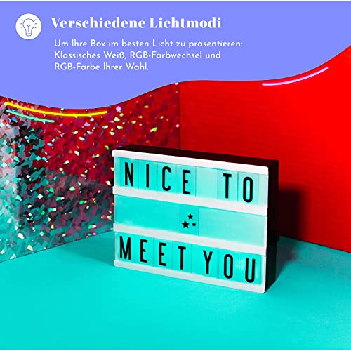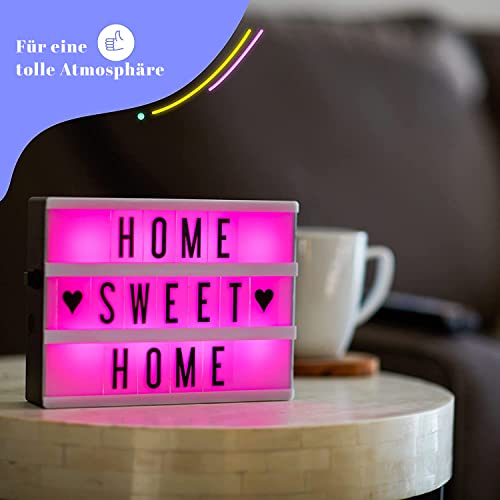 My Cinema Lightbox – Buchstaben Farbwechsel Lichtbox, 20x15cm – LED Marquee Lichtbox mit 100 Buchstaben – Leuchttafel…