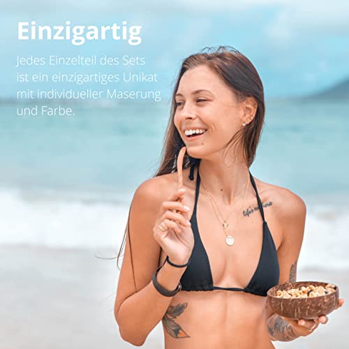 🌴 𝐄𝐈𝐍𝐙𝐈𝐆𝐀𝐑𝐓𝐈𝐆 – Jedes Einzelteil des Sets ist ein einzigartiges Unikat mit individueller Maserung und Farbe. Die tropische Alternative zur herkömmlichen Müslischale, Salatschüssel oder Snack-Bowl mit Holz-Geschirr.