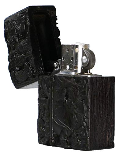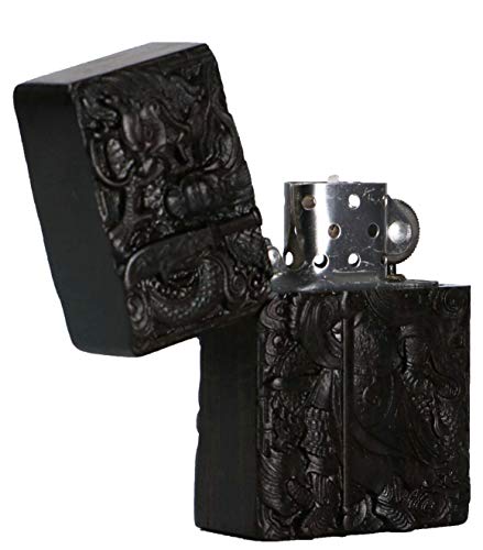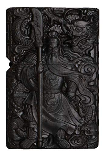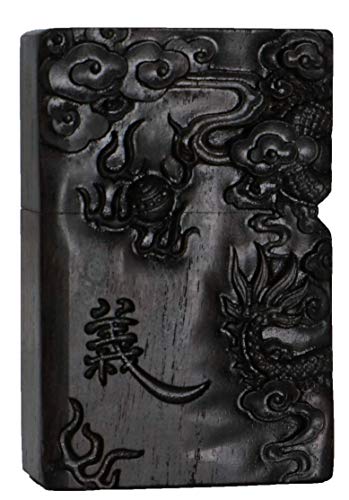 Details: Natürliches Ebenholz Schwarz Holz geschnitzt Außengehäuse für Zippo-Feuerzeugeinsatz (Guan Gong Yu Krieger Drache)