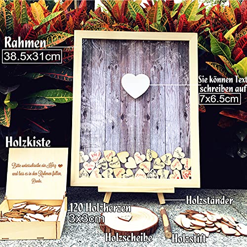 Rahmenset +120 leere Holzherzen (auf die Namen und Wünsche geschrieben werden können) + Holzständer + Holzstift + Holzscheibe