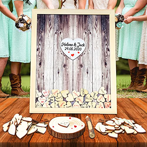 Details: Neamon Gästebuch Hochzeit Holz inkl.120 Herzen Herz Hochzeitsgästebuch Gästebuch Taufe Geburtstag Hochzeitsdekoration…