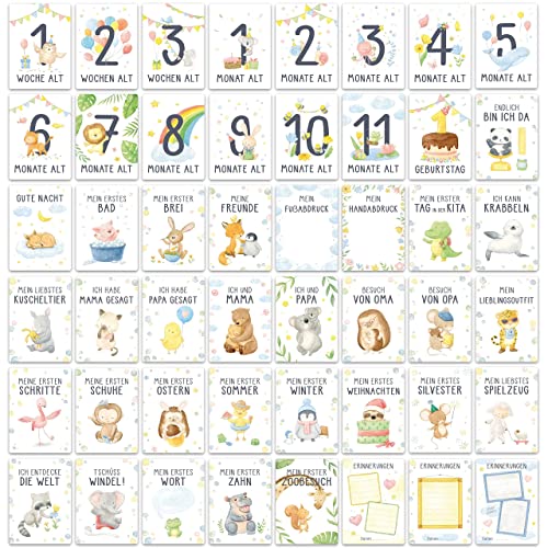 💚 𝟰𝟱 𝗠𝗘𝗜𝗟𝗘𝗡𝗦𝗧𝗘𝗜𝗡𝗞𝗔𝗥𝗧𝗘𝗡: Eltern können so die wichtigsten Meilensteine des Babys mit einem Foto und Kommentar auf der Rückseite der Karte für immer festhalten.