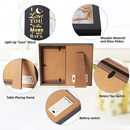 💖 Beleuchteter Bilderrahmen – der Liebes-Bilderrahmen leuchtet, wenn Sie 2 x AAA-Batterien einlegen, schalten Sie den Schalter ein. „Ich liebe dich zum Mond und zurück“ wird ein schönes gelbes Licht emittieren, so niedlich.