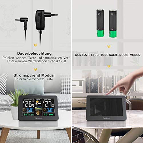 Details: Newentor Wetterstation Funk mit Außensensor – Funkwetterstation mit Wettervorhersage, Temperaturwarnung, DCF Funkuhr…