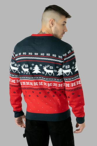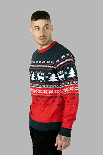 Herren Fairisle Weihnachtspullover Xmas Rentier Schnee Pullover