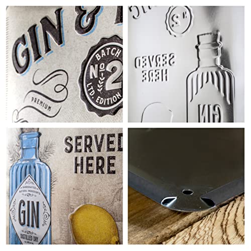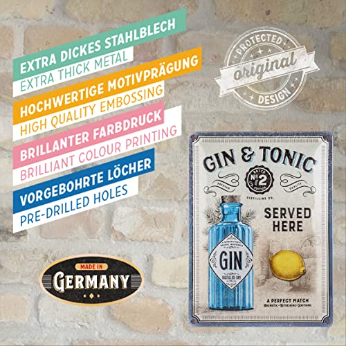 Details: Nostalgic-Art Retro Blechschild, 30 x 40 cm, Gin & Tonic Served Here – Geschenk-Idee als Bar-Zubehör, aus Metall…