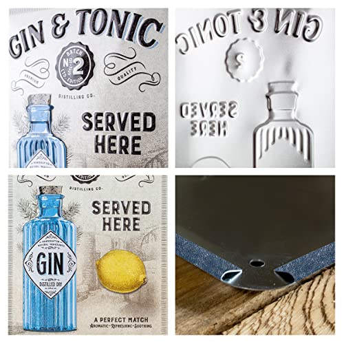 Details: Nostalgic-Art Retro Blechschild, Gin & Tonic Served Here – Geschenk-Idee für Bier-Fans, aus Metall, Vintage-Design zur…