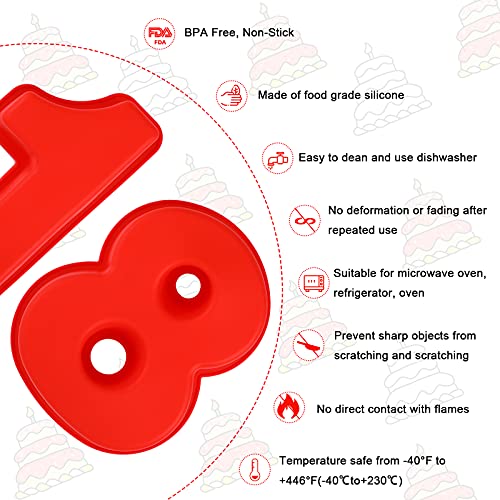 Große Formgröße: Die Nummer 1 misst ca. 26 x 13,1 x 6 cm/ 10,2 x 5,2 x 2,4 Zoll, und die Zahl 8 ist ungefähr 25 x 20 x 6 cm/ 9,8 x 7,9 x 2,4 Zoll, eine große Größe, die zum Backen von Geburtstags- und Jubiläumskuchen geeignet ist