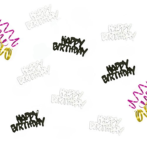 Details: Oblique-Unique® Happy Birthday Schwarz Silber Geburtstag Tisch Konfetti mit Spiegeleffekt – über 150 Stück