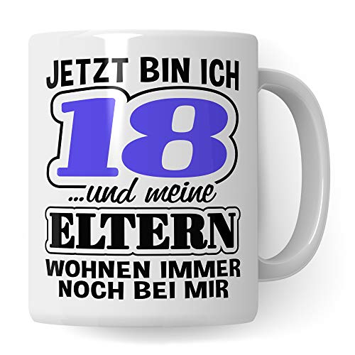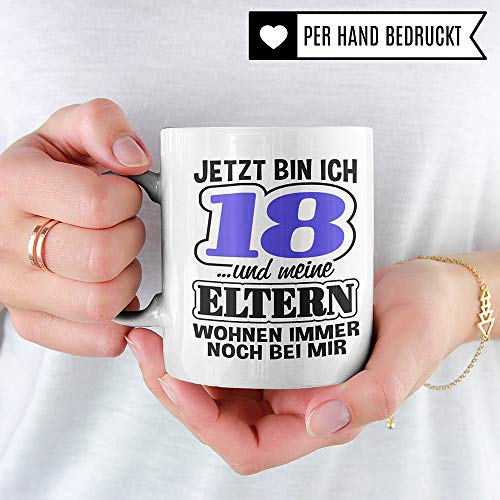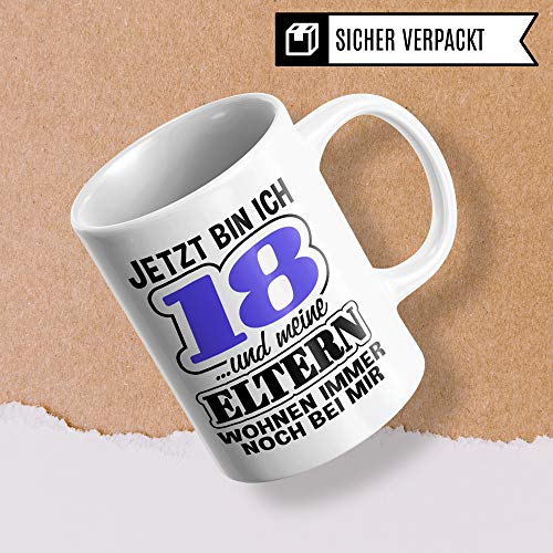✅ JETZT BIN ICH 18 UND MEINE ELTERN WOHNEN IMMER NOCH BEI MIR. Lustiger Tassen Spruch für jeden Jungen und jedes Mädchen, das 18 Jahre alt wird. Witziges Geschenk für den 18. Geburtstag.