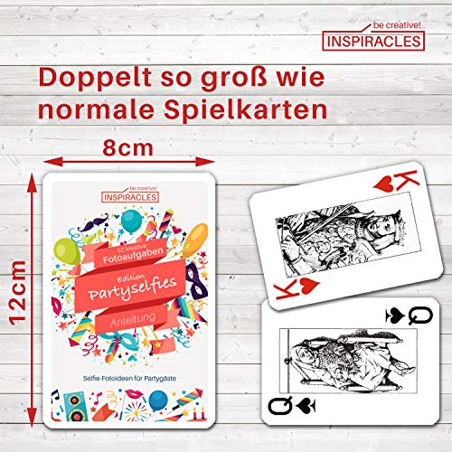 Im XXL Kartenformat, daher gut im Dunkeln erkennbar: Das beliebte Fotospiel für Gäste ist witzig und verrückt, mit 52 Fotoaufgaben für lustige Partyselfies