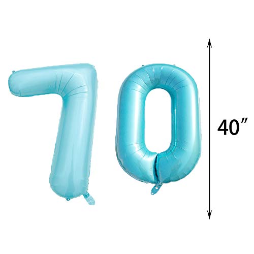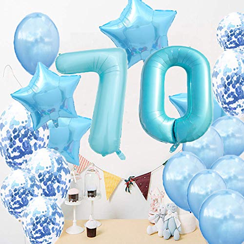 Partyzubehör zum 70. Geburtstag, blau, Zahl 70, Mylar-Ballon, Latex-Ballon, Dekoration, tolles süßes Geschenk zum 70. Geburtstag für Mädchen, Foto-Requisiten