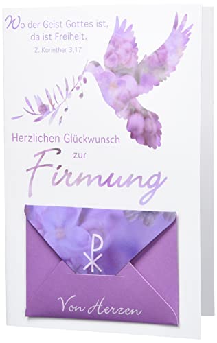 Karte zur Firmung Geldkarte Lifestyle- Lila Taube- 11,6 x 16,6cm