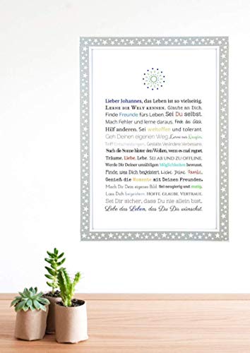 Schlagwörter: Jugendweihe, Erstkommunion, Firmung, Konfirmation, Kommunion, personalisiertes Geschenk, Kunstdruck, Bild, Poster
