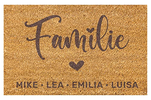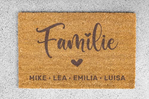 HOCHWERTIG Jede Fußmatte wird tief ins Gewebe gelasert, damit der Wunschname lange hält. Die Manilu Fussmatte ist durch ihre Kokosfasern ideal für den überdachten Außenbereich geeignet und besteht zu 100% aus Kokos.
