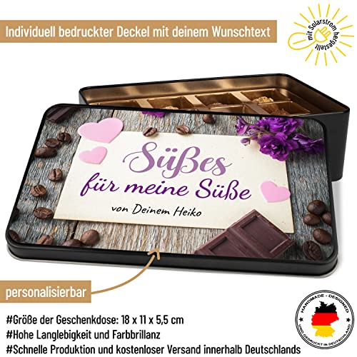 Personalisierte Pralinen zum Valentinstag – individuell bedruckte Metalldose mit 12 Confiserie-Pralinen „Süßes für meine…
