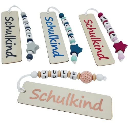 Details: Personalisiertes Lesezeichen“Schulkind“ mit Namen – freie Farb und Motivwahl – Geschenk Einschulung Schulanfang Erstleser Schultüte Junge Mädchen