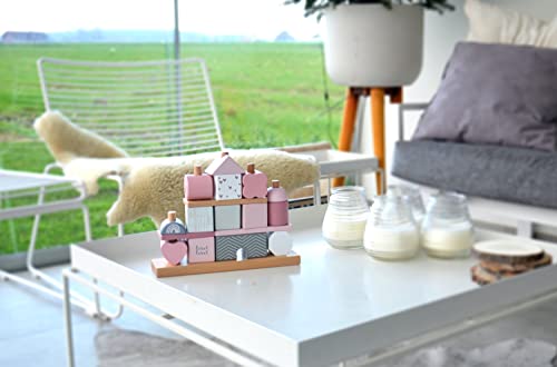 Ein schönes klassisches Kinder Stapel- & Steckspiel aus Holz. Die Stapelwürfel von Label-Label bilden mit seinen schönen Rosa, Weiß, Grauen Farbkombination in Verbindung mit Naturholz ein optisches Highlight für jedes Wohn- und Kinderzimmer. Er fördert die Hand-Augen-Koordination und eignet sich zum gemeinsamen Üben. Geschmückt sind die Holz-Stapelwürfel mit kleinen Mustern und Formen, personalisiert ist das Stapel- und Steckspiel Haus wunderbar als Geschenk zur Taufe, Geburt oder als Geschenk mit Geburtsdaten für das neugeborene Baby von Freunden und Familie geeignet. Es entspricht den CE-Normen und wurde gemäß den europäischen Sicherheitsstandards für Spielzeug geprüft.
