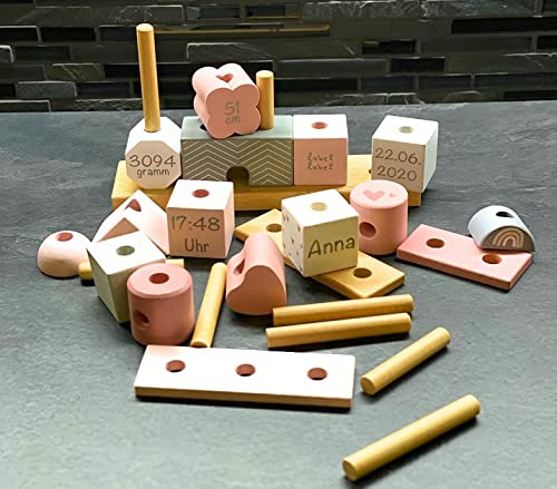 * NIEDLICHES DESIGN – Angenehme Pastellfarben & wunderschöne Muster machen das Geburtsandenken zu einer tollen Wohn- & Kinderzimmer Deko – Personalisiert wird das Holzspielzeug zu einem echten Hingucker