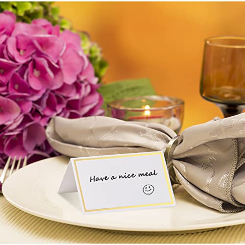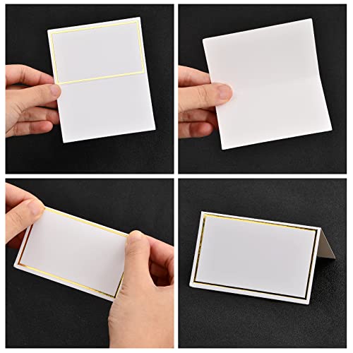 2.Namenskarten mit Goldfolienranddesign eignen sich für Hochzeiten, Partys und verschiedene Anlässe. Alle Wörter werden unter der Dekoration der Goldfolienbordüre modischer und schöner und beeindrucken Ihren Gast sehr.