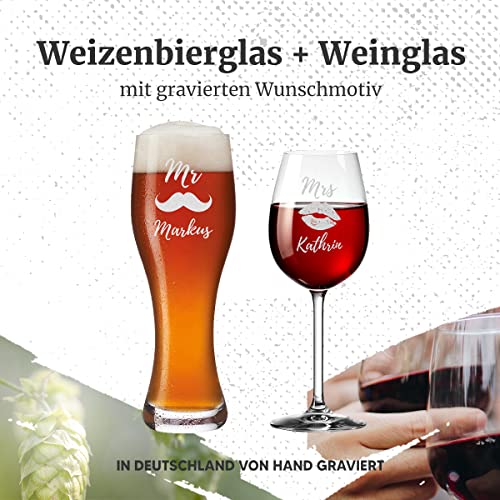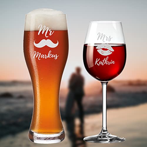 🎁 TOLLES GESCHENKSET: Bei diesem Geschenkset kommen Liebespaare und Trauzeugen ganz besonders auf Ihre Kosten. In diesem Set ist neben dem klassischen Weizenglas ein Weinglas für die Dame enthalten. Beide Gläser werden mit zueinander passenden Motiven graviert.