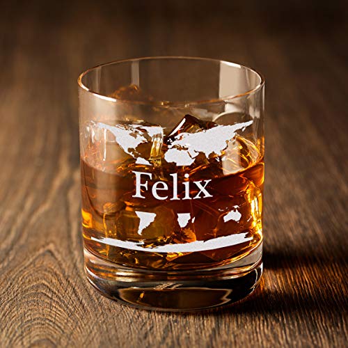 Details: polar-effekt Whiskyglas mit Gravur, hochwertiges Whiskey Tumbler Glas graviert mit Name – Motiv Weltkarte, 320ml…