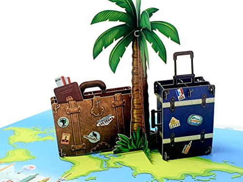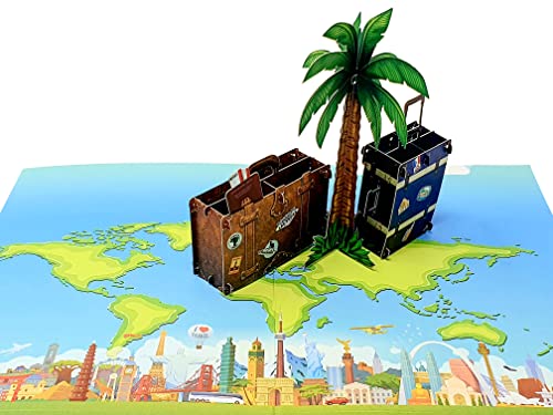 DIE MAGISCHSTE KARTE: Beim Öffnen der Karte springt das Vergnügen von Koffern und einer Palme aus der Karte heraus, wobei die Karte wunderbar mit der Weltkarte verziert ist. Der Empfänger wird von den Details und Farben begeistert sein.
