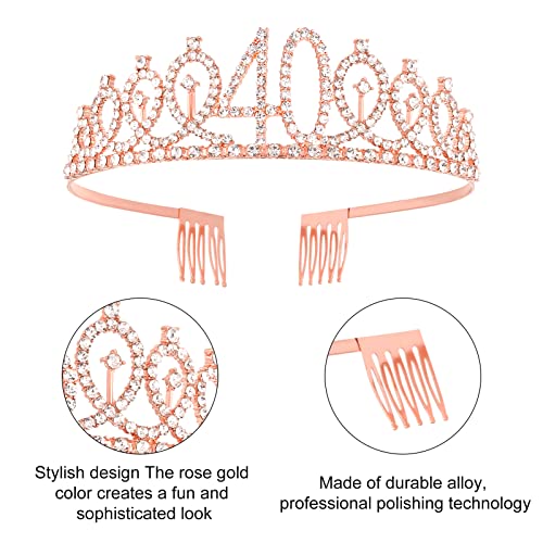 40 krone Strass Tiara: Dieses roségoldene Geburtstagskrone ist wie eine Krone gestaltet, Hergestellt aus hochwertiger Legierung mit glänzenden Strasssteinen verziert, verleiht Ihnen ein Gefühl von Eleganz und femininem Charme, kann Sie in der Partymenge glänzen und auffallen lassen, gewinnt mehr Komplimente.Krone mit Kämmen: Zwei Kämme an beiden Enden der Krone können das Haar fester greifen.