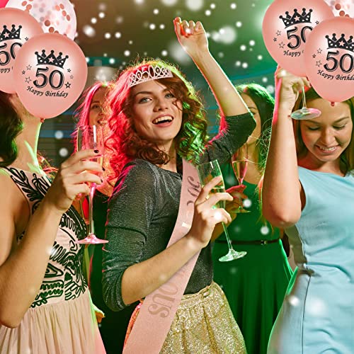 Tolles Geburtstagsgeschenk für Sie: Dieses Kit enthält 50 & Fabulous Schärpe, 50 Geburtstags Krone Strass Tiara, Perlmutt ,Konfetti Luftballons und Happy Birthday Cupcake Topper. Alle diese Geburtstagszubehörteile sind in einer Box verpackt. Es ist ein tolles Geburtstagsgeschenk für die Geburtstagskindfrauen.