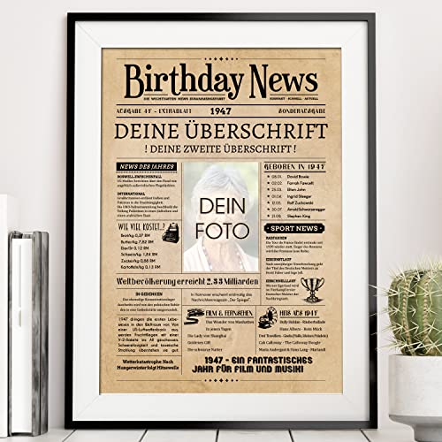 Details: PRINTALA Geburtstagszeitung – personalisiert mit Deinem Text & Foto | Jahrgang nach Wahl | Posterdruck (1947)