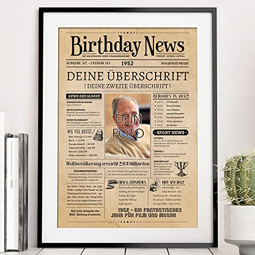 Details: PRINTALA Geburtstagszeitung – personalisiert mit Deinem Text & Foto | Jahrgang nach Wahl | Posterdruck (1952)