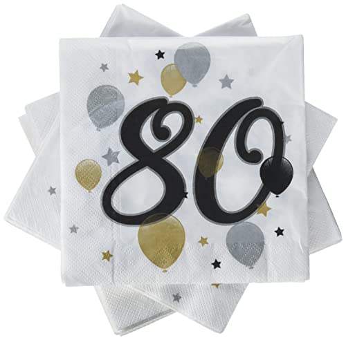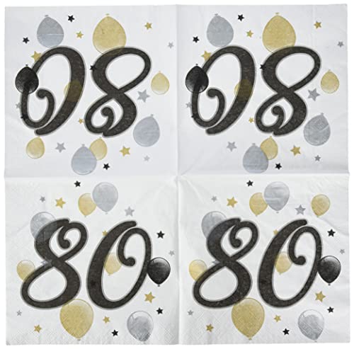 Details: Procos 88871 – Servietten Happy Birthday, Milestone 80, 33x33cm, 20 Stück, Ballonmotiv, 60er Geburtstag…