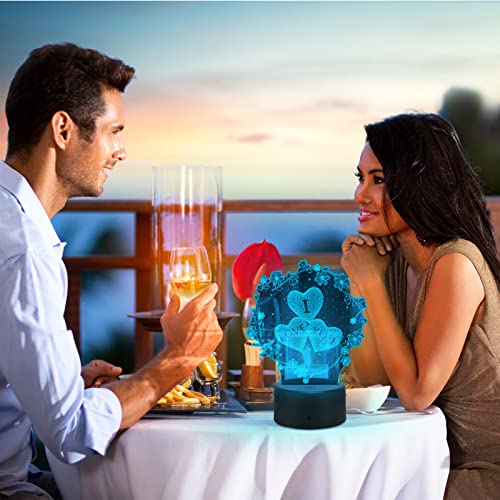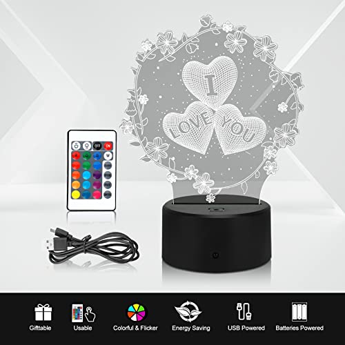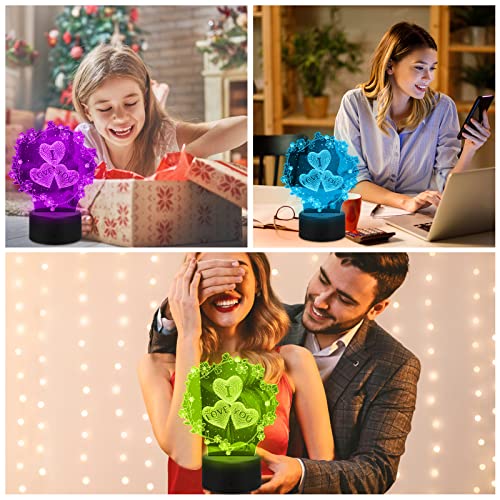 Punvot 3D Illusion Lampe, Ich Liebe Dich Geschenke Für Frauen, 3D Herz Formen Nachtlichter, LED Nachtlicht 16…