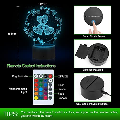 Details: Punvot 3D Illusion Lampe, Ich Liebe Dich Geschenke Für Frauen, 3D Herz Formen Nachtlichter, LED Nachtlicht 16…