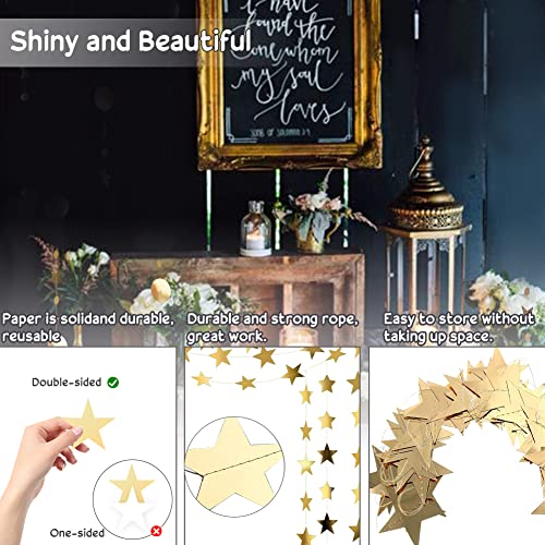 ★★【Robustes Papiermaterial】Die Glitzerpapiergirlande ist aus aus hochwertigem Karton, nicht zerbrechlich und leicht zu biegen, und mit PVC glänzend reflektierender Oberfläche, doppelseitige Sterne, kein Glitzer, metallisch glänzend kein Kratzer, langlebiges Seil.