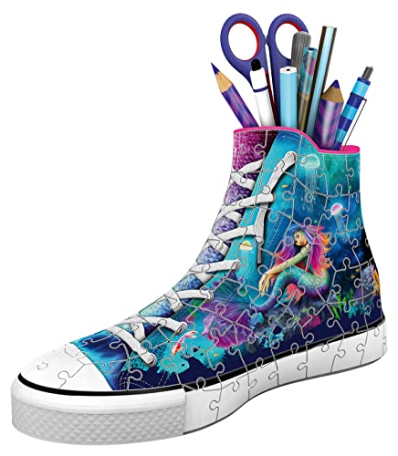 Details: Ravensburger 3D Puzzle 11279 Sneaker Bezaubernde Meerjungfrauen – Praktischer Stiftehalter – 108 Teile – Schreibtisch…