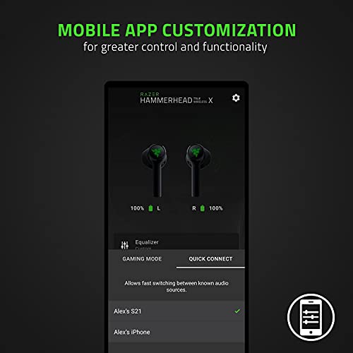 Details: Razer Hammerhead True Wireless X – Niedrig Latenz Ohrstöpsel (Niedrig Lattenz 60ms Gaming Modus, Mobile App-Anpassung…