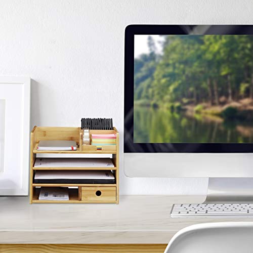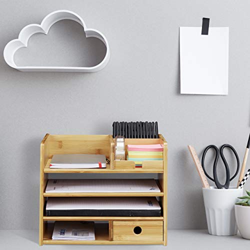 Details: Relaxdays Schreibtisch Organizer, Briefablage A4, Notizzettel und Stifte ordnen, Schublade, Ordnungssystem Büro, Bambus…