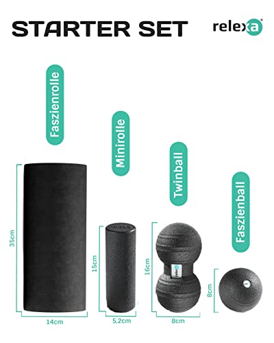 Details: RELEXA Faszienstarterset | 5-Teiliges Set Zur Massage Bei Rückenschmerzen & Als Fitness-Training Zubehör | Angenehmes…