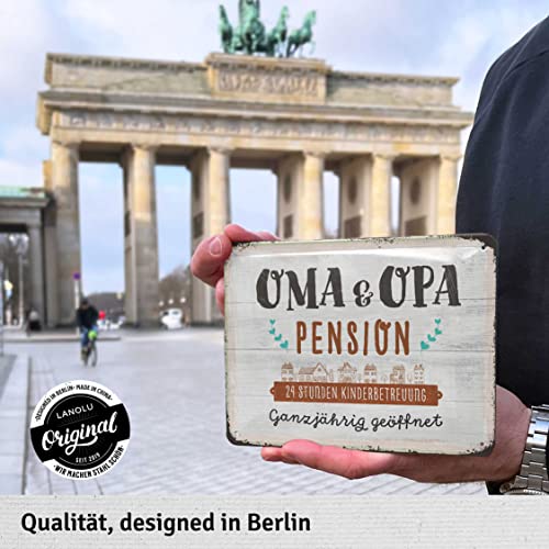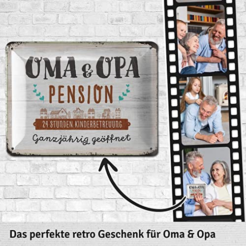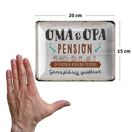 Details: Retro Blechschild OMA UND OPA PENSION – lustiges Türschild als Geschenk – Metallschild mit Sprüchen – für Großeltern die…