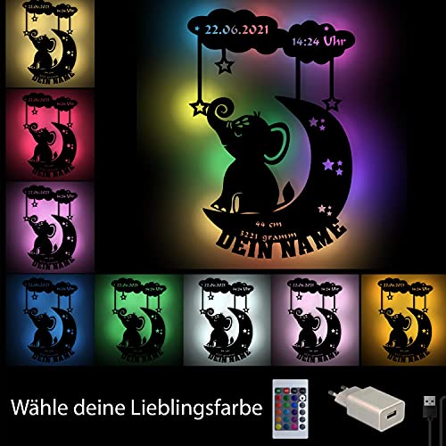 Details: RGB Baby-Geschenke personalisiert mit Namen zur Geburt & Taufe Taufandenken für Mädchen & Junge Jungs I USB Farbwechsel…
