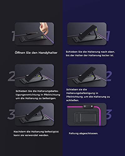 【Magnetischer Handyhalter】Im Gegensatz zu anderen LED Mousepad ist unser xxl RGB Mauspad mit einem magnetischen Handyhalter ausgestattet. Es kann einen guten Standort für Ihr Mobiltelefon bieten, gleichzeitig Sie können auch wichtige Nachrichten beim Spielen / Arbeiten nicht verpassen.