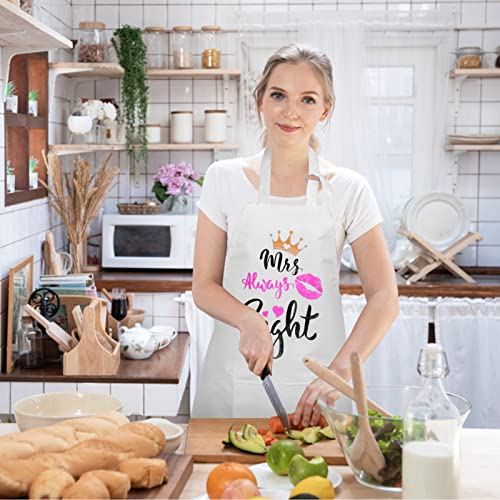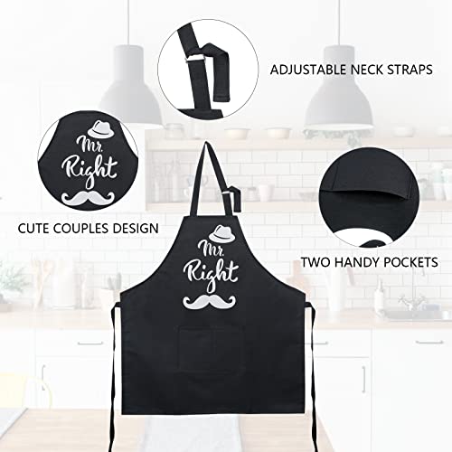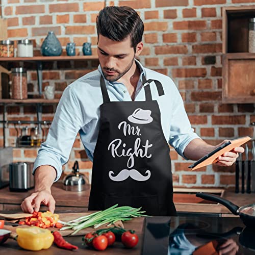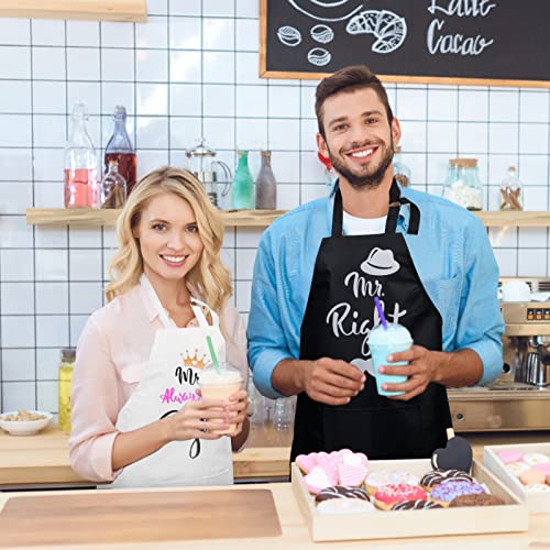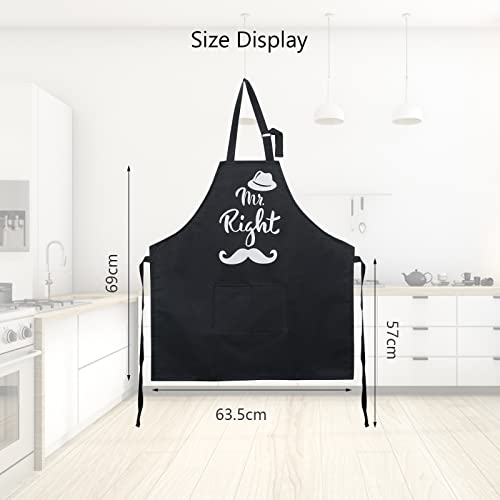 Schöne Paarschürzen: Die Schürze ist mit den Worten „Mr. Right“, „Mrs. Always Right“, Lippen, Krone, Herz, Bart, Hut und anderen Mustern bedruckt. Es kann die Beziehung zwischen Mann und Frau verbessern und dem Leben ein Gefühl von Ritual verleihen.