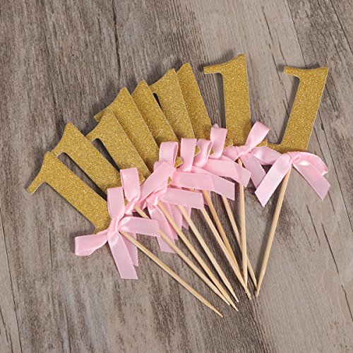 Details: rosenice Cake Topper Glizer golden Kuchendeckel für 1 Jahr Geburtstag Jubiläum Torten Dekor 20pcs