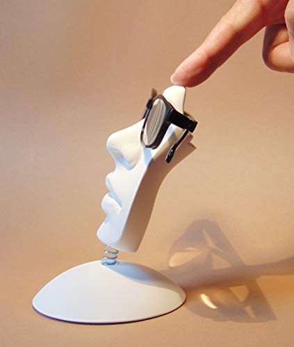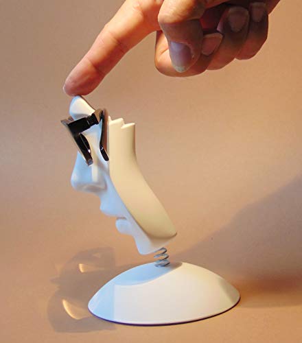 DER ERSTE BEWEGLICHE UND PATENTIERTE BRILLENHALTER – Die einzigartige und witzige Verbindung zwischen Sockel und Gesicht macht diesen Eyecatcher so absolut einzigartig! Durch die gute Standfestigkeit und der beweglichen Feder ist das Aufsetzen der Brille kinderleicht und schützt dabei gleichzeitig vor Beschädigungen. Auf der Rückseite befinden sich mehrere Ablagestufen für die Brillenbügel! Wie du siehst, haben wir an alles gedacht!😉